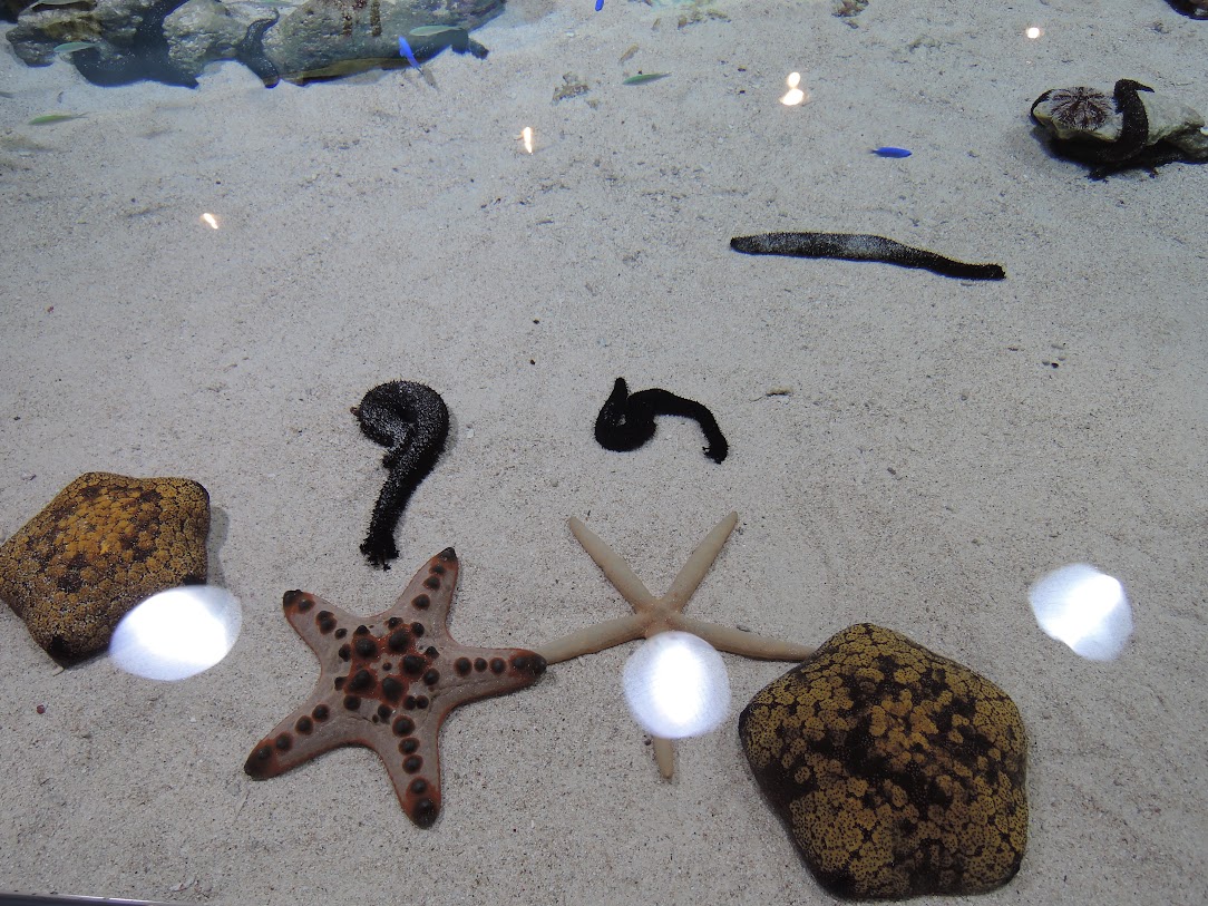 ヒトデやナマコを手で触れるコーナーw