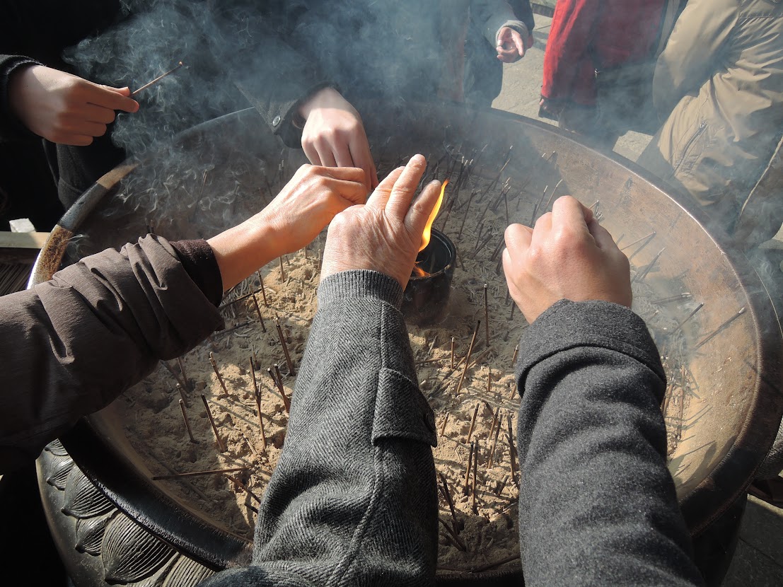 線香の煙が舞い上がっていてタイミングが難しいです。