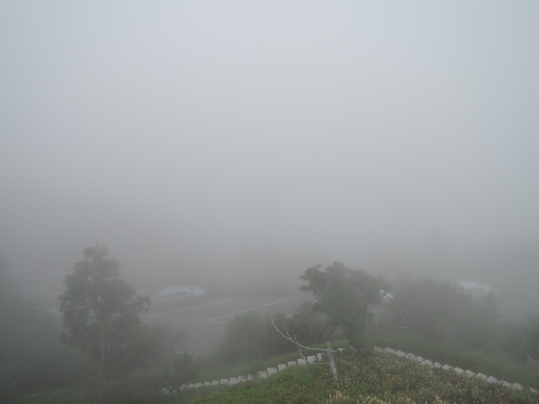 霧がひどい…。景色も何もあったもんじゃない。