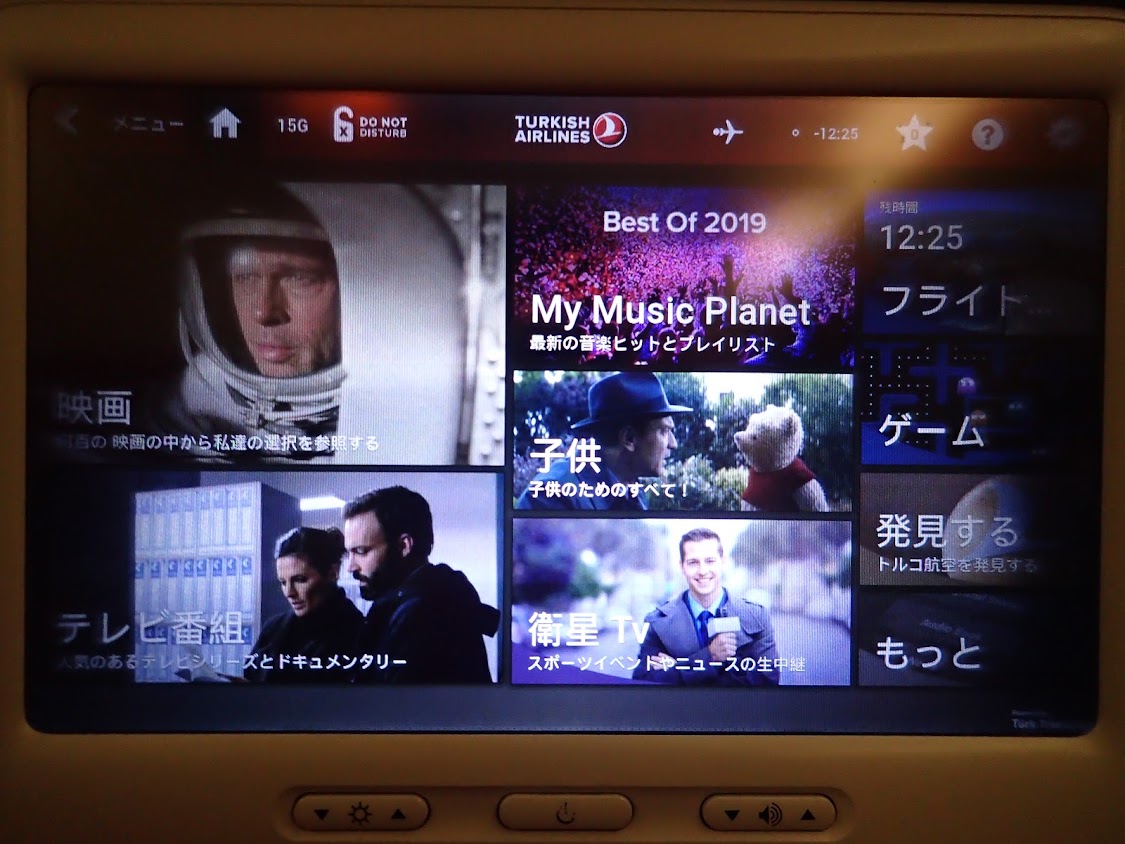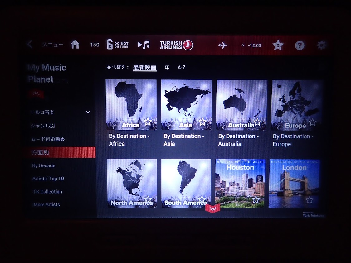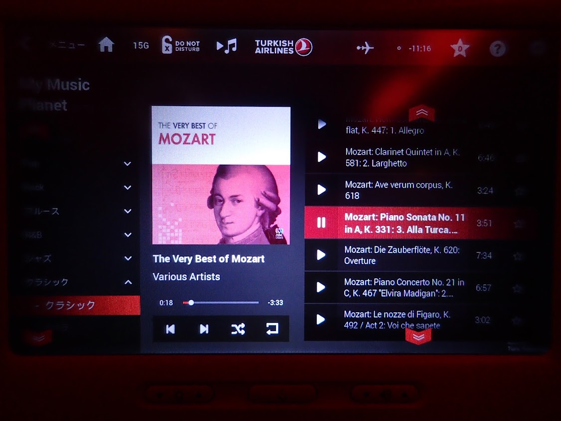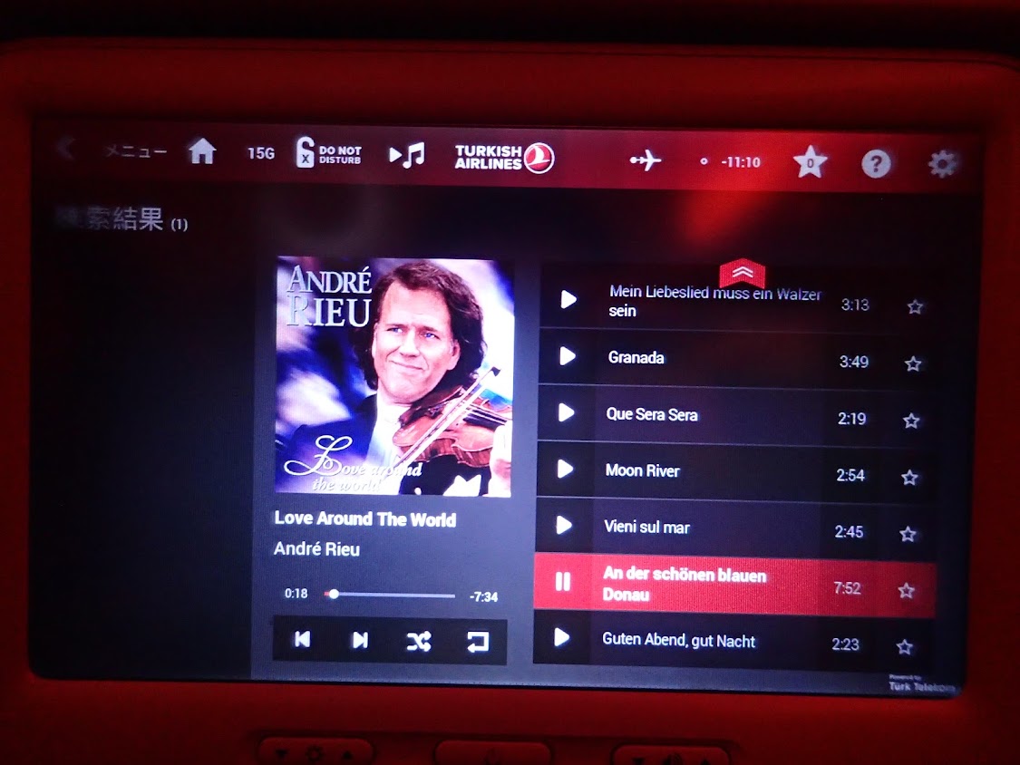 エンターテインメントが見たいものがないので、音楽を聞く。