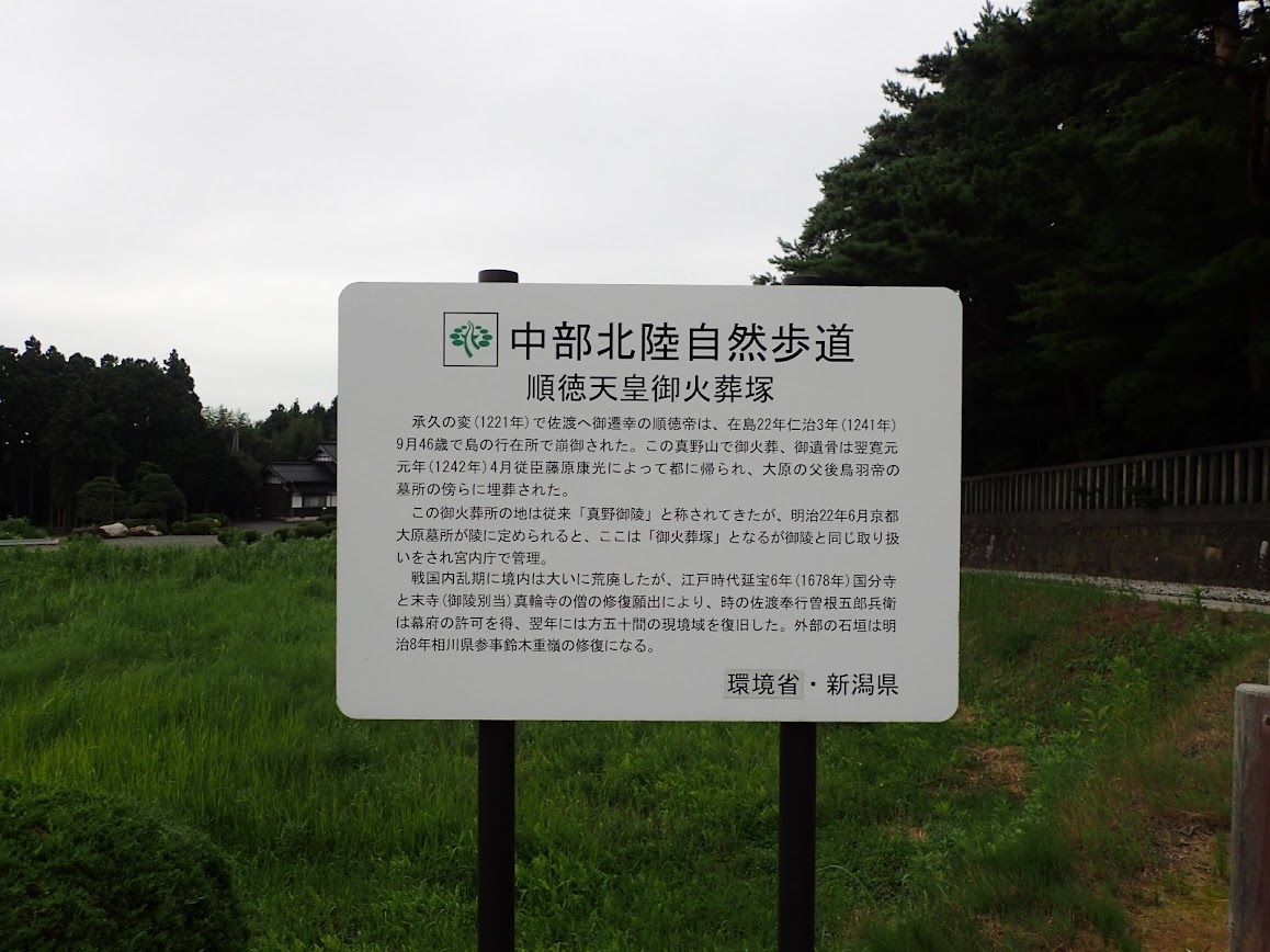 配流された順徳上皇を火葬した場所とのことです。承久の乱で流され、結局生きて京の都には戻れなかったそうです。