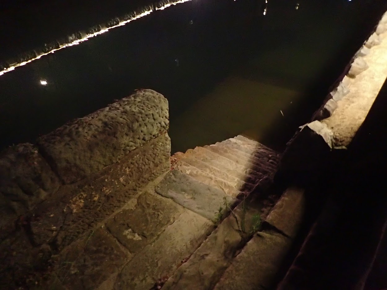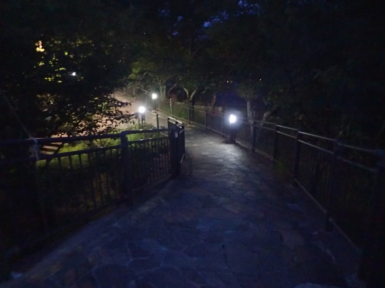 満潮だからか、昼間歩いていた川岸の道が沈んでいます。